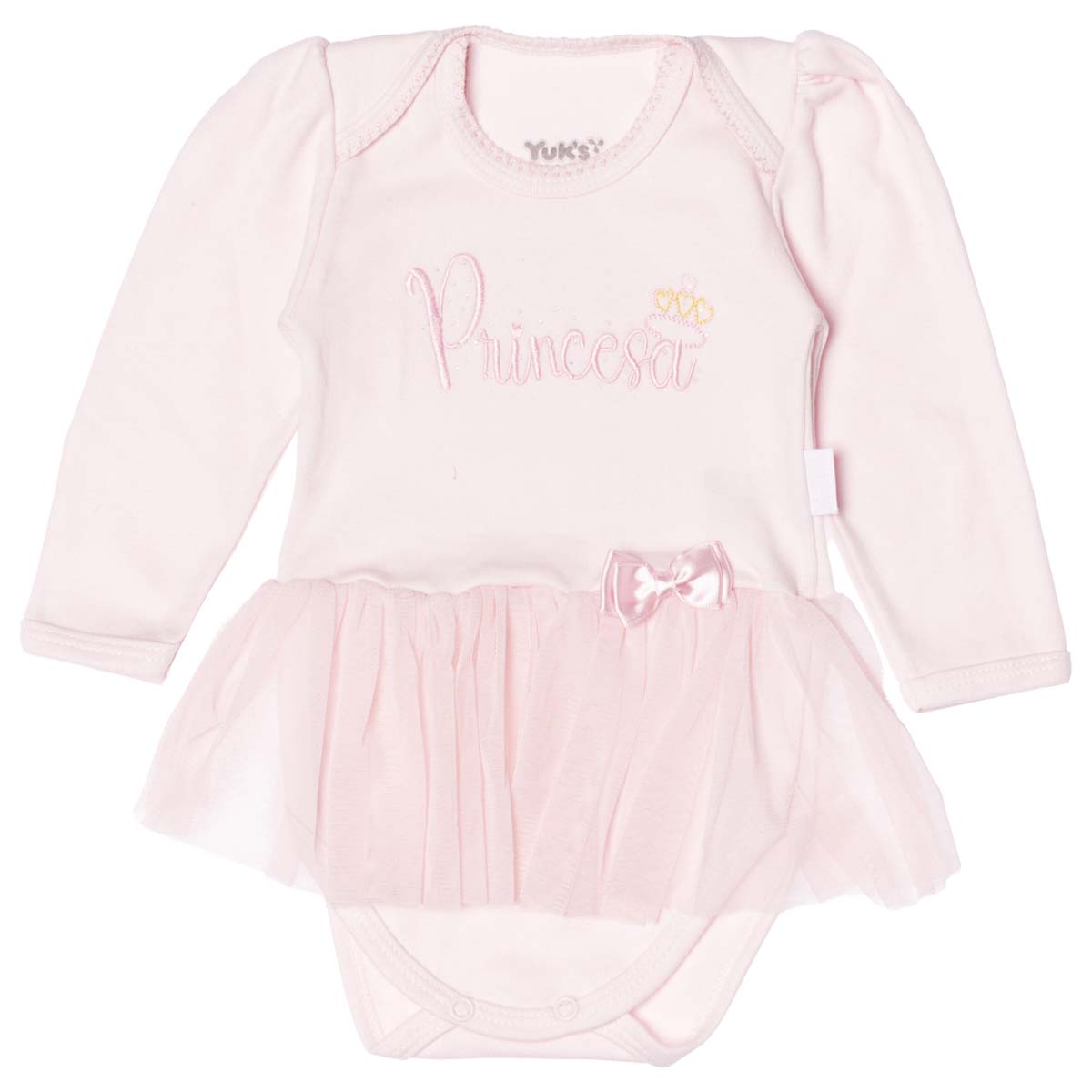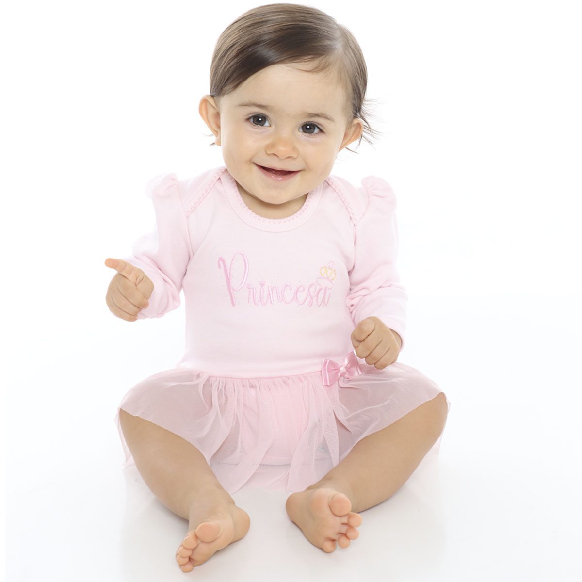 Nome Produto: Body para bebê menina manga longa e saia de tule princesa