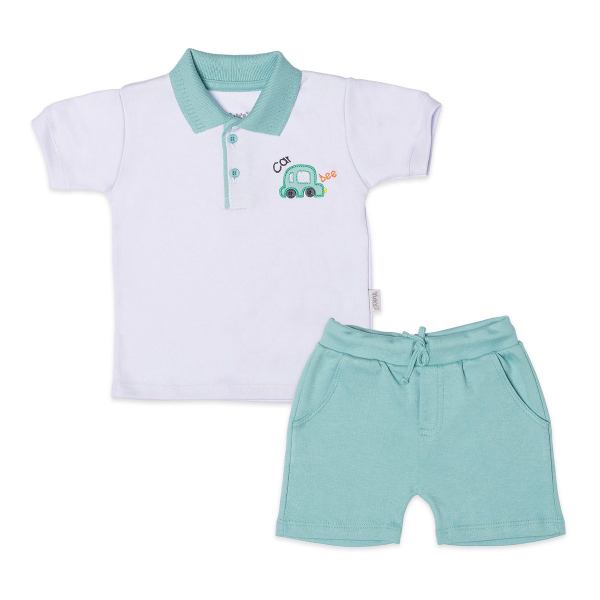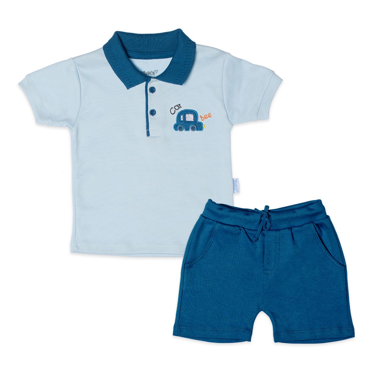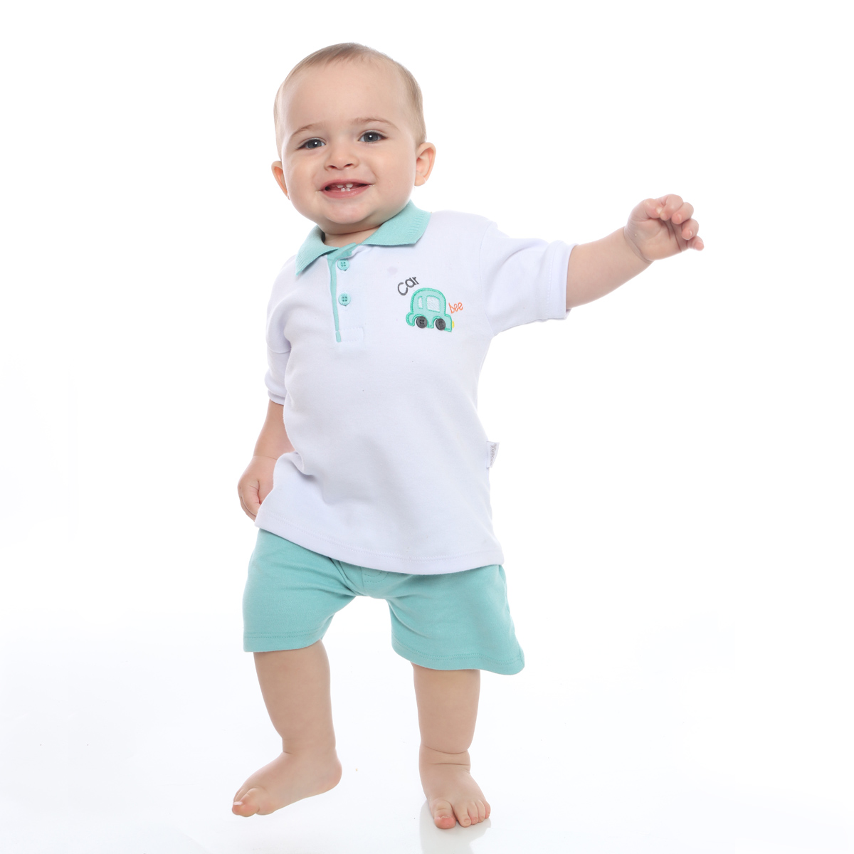 Conjunto para bebê menino camisa polo e bermuda cars.