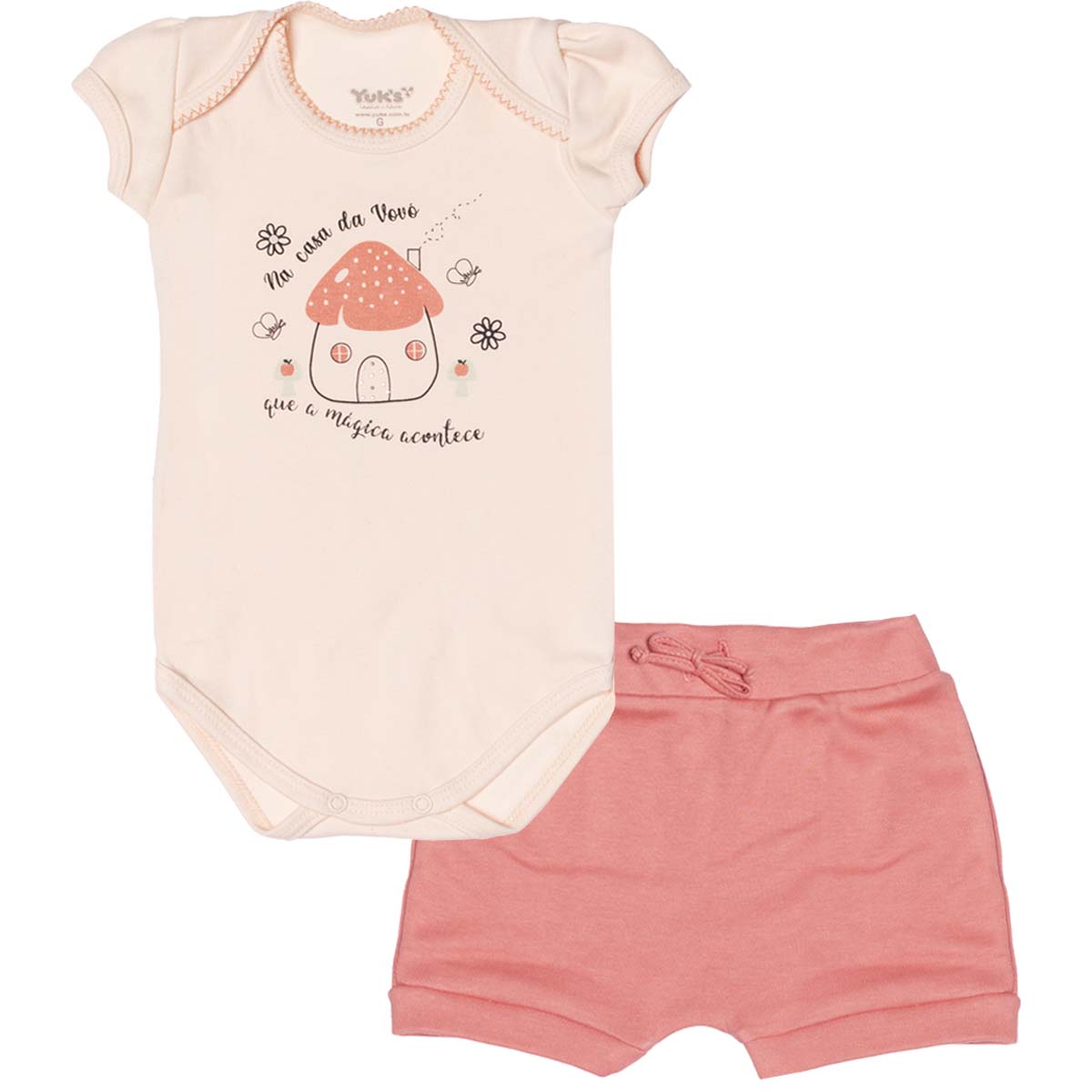Nome Produto: Conjunto para bebê menina body manga curta casa da vovó com short