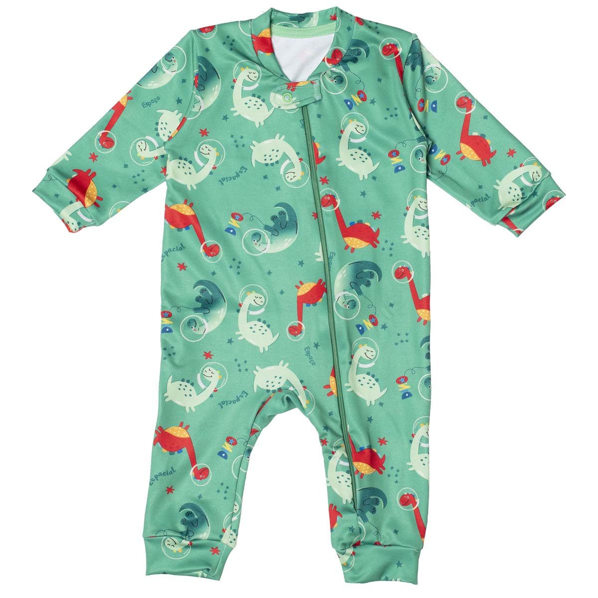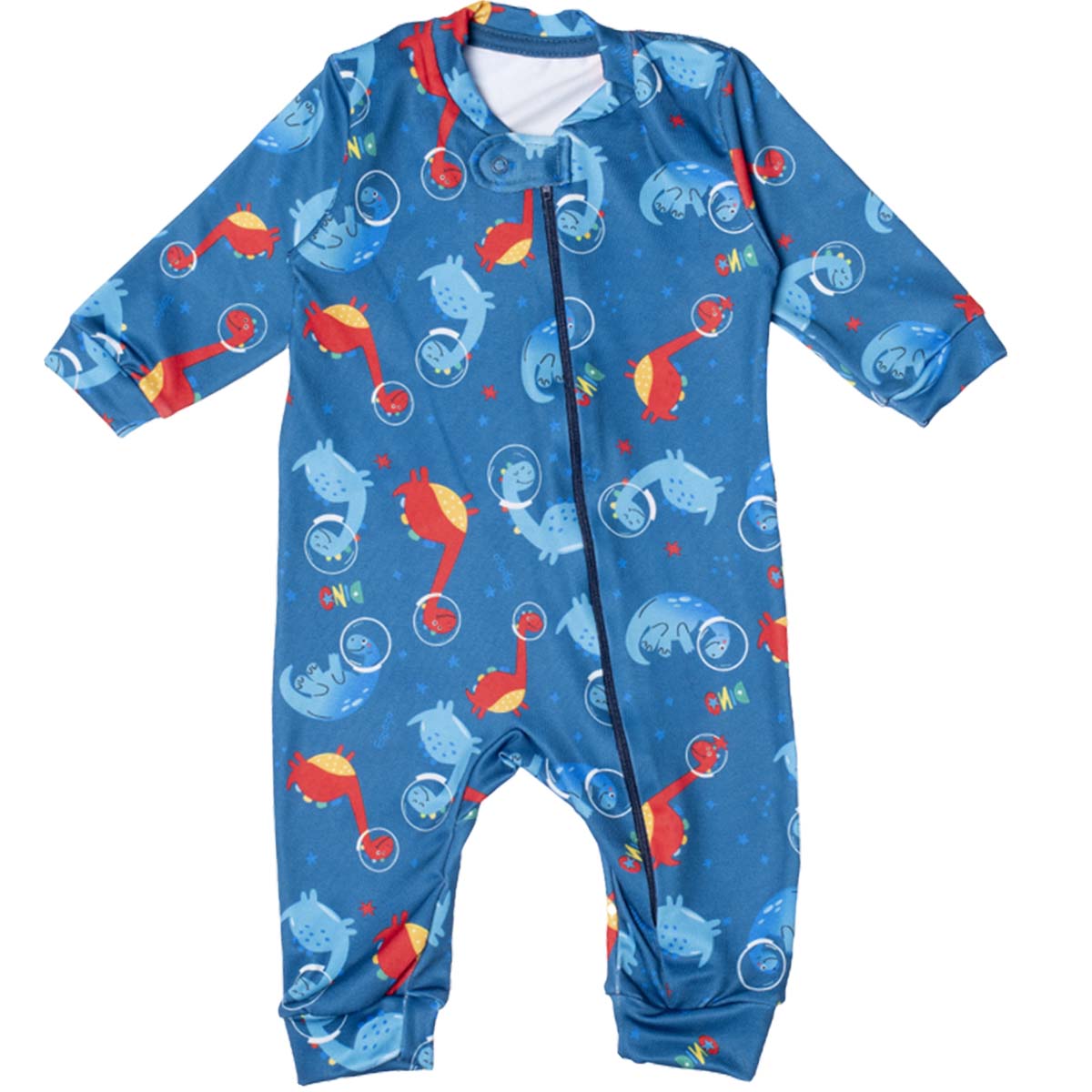Nome Produto: Macacão para bebê menino com zíper dinos espaço